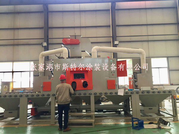 南通市榮力達鋁業四虎影视国产精品免费久久-四虎成人免费视频-四虎成人精品-四虎成人免费位于南通海安縣,主要經營各種鋁材、五金、汽車零部件、電梯零部件、光伏配件等產品,本次定制的輸送式自動噴砂機主要處理鋁材用的,噴砂機的入口寬度為1000*200mm,噴砂槍為16把,輸送方式為包膠托輥自動輸送的,運行速度變頻可調,工作壓力無極可調,大大降低了人工成本,提高了產品質量。該自動噴砂機應客戶產品的要求專門定制的自動化噴砂機,可以達到操作時無死角噴砂加工,可以使普通工人能夠傻瓜式操作噴砂機設備,目前我們在生產噴砂機的同時,也在考慮怎么樣可以讓客戶能夠放心的使用,大膽的使用噴砂機和噴砂房設備,因為在設計噴砂機時候如果太過于復雜或者自動化程度太高,這樣會給客人造成麻煩,如果客戶工廠沒有操作噴砂機的熟練工人專用客戶也無法維護,專用就會給我們專業制造噴砂機的廠家造成好多售后問題,售后的問題主要一些工人對設備原理不懂,對噴砂機的構造不了解,不敢下手,非常微小的問題都不敢解決故障,避免這個通常的問題,那么我們在設計噴砂機的時候盡量使用傻瓜式噴砂機械設計思路,我們按照客戶要求,但是有會把可能會出現的車間噴砂房或者噴砂機的故障會一一解釋清楚,我們按照環保設備要求制作,打造高標準的,高環保的,低能耗的設備,為在使用噴砂機的任何一家使用單位解決后顧之憂。